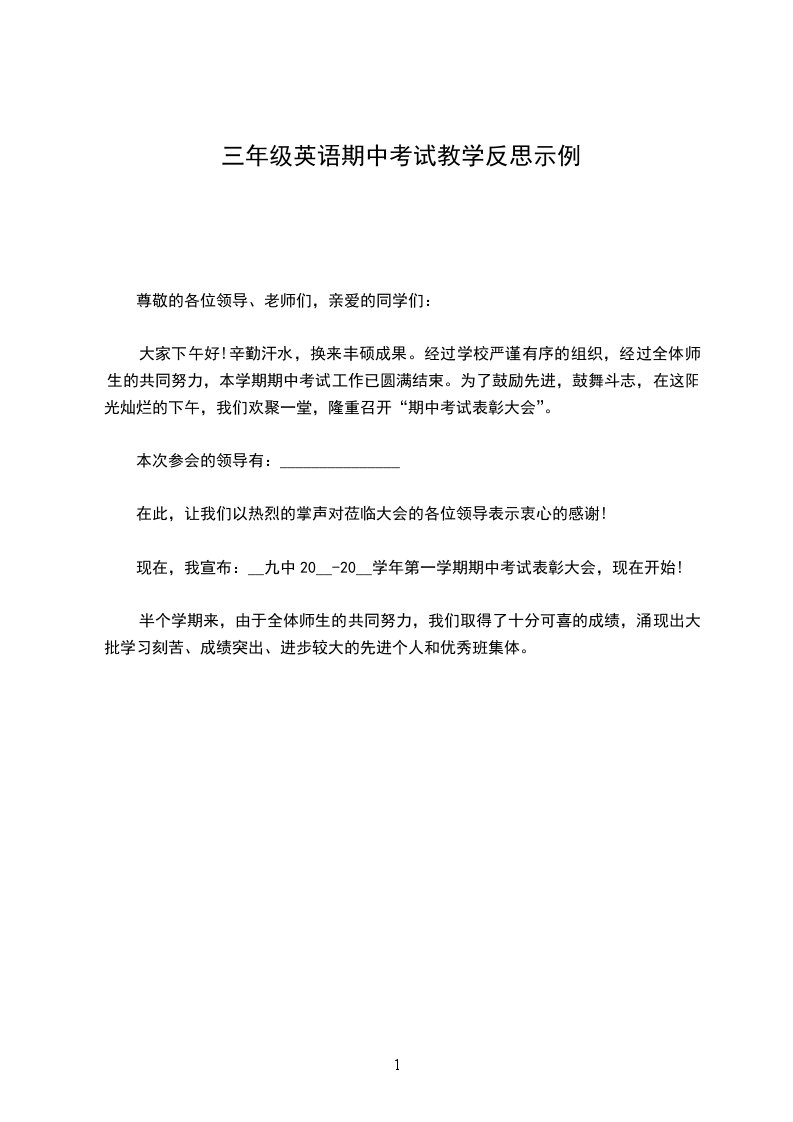 大家下午好!辛勤汗水,换来丰硕成果。经过学校严谨有序的组织,经过全体师生的共同努力,本学期期中考试工作已圆满结束。为了鼓励先进,鼓舞斗志,在这阳光灿烂的下午,我们欢聚一堂,隆重召开“期中考试表彰大会”。