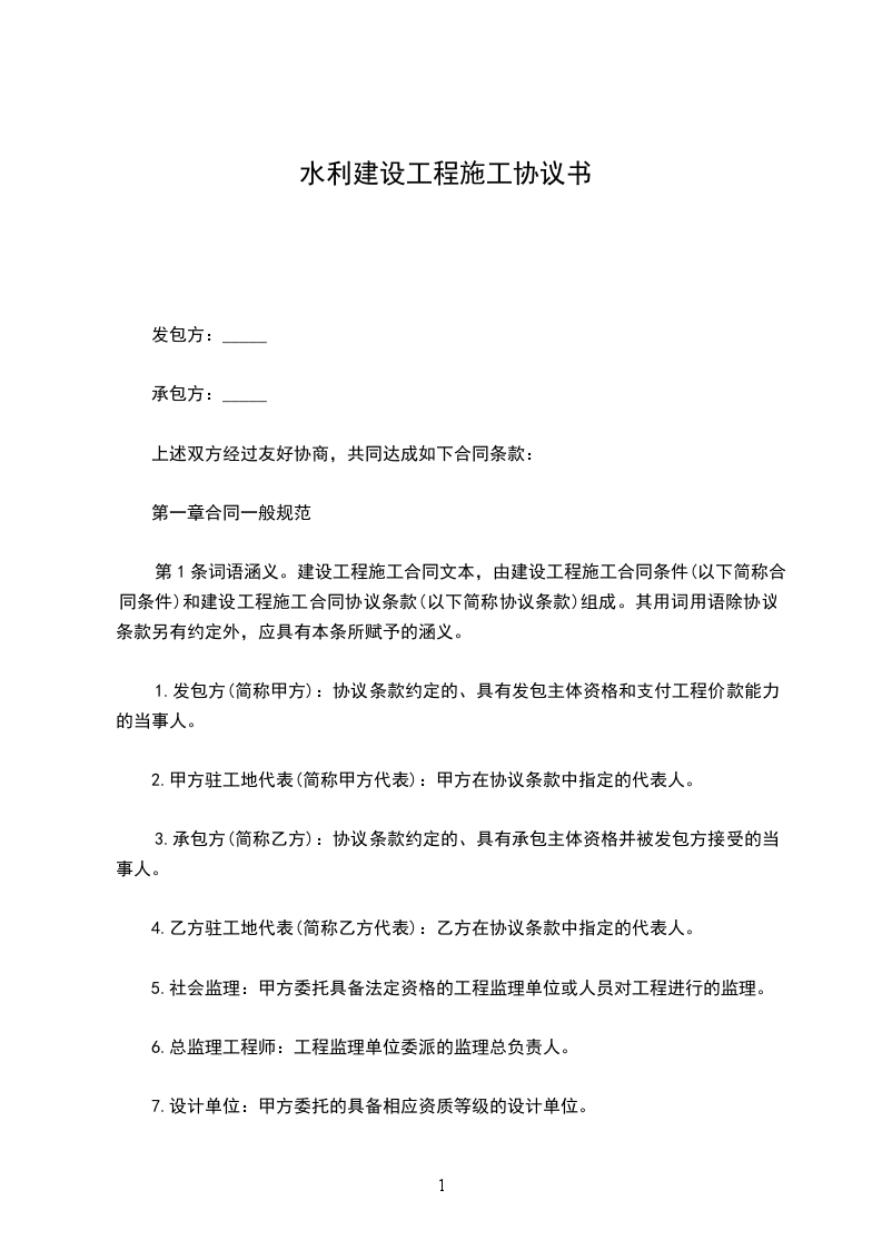 第1条词语涵义。建设工程施工合同文本,由建设工程施工合同条件(以下简称合同条件)和建设工程施工合同协议条款(以下简称协议条款)组成。其用词用语除协议条款另有约定外,应具有本条所赋予的涵义。