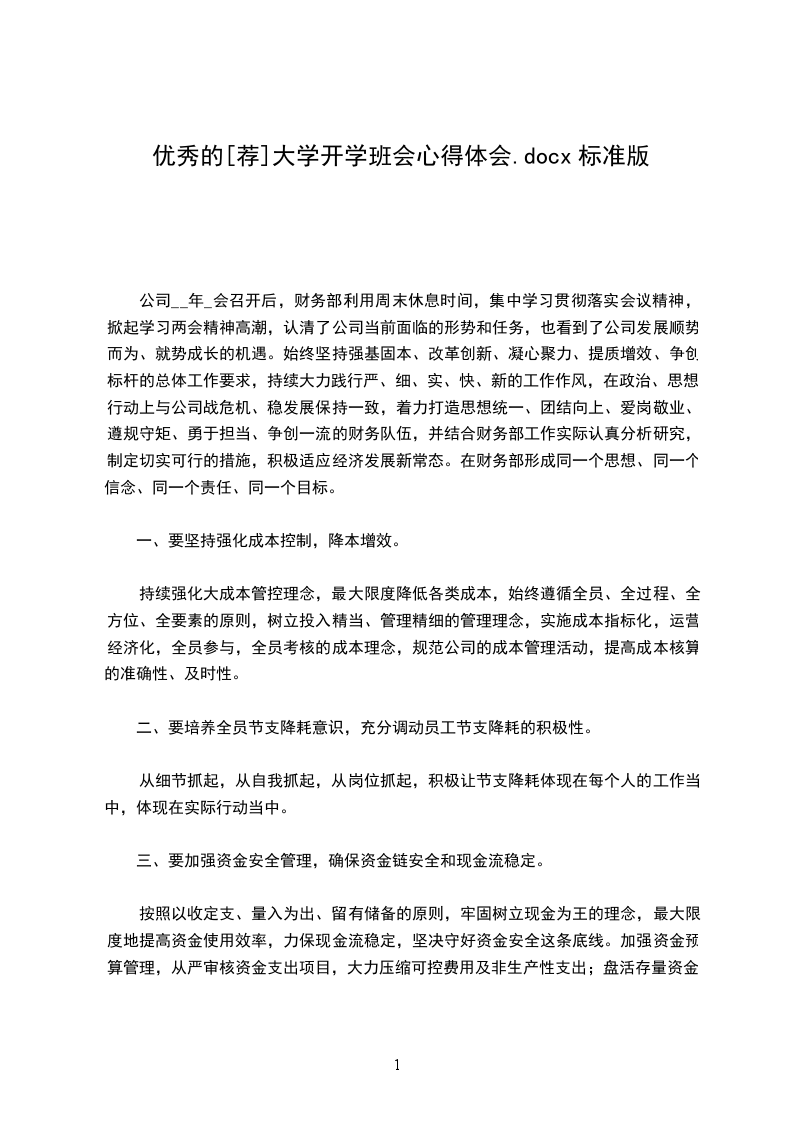 公司__年_会召开后,财务部利用周末休息时间,集中学习贯彻落实会议精神,掀起学习两会精神高潮,认清了公司当前面临的形势和任务,也看到了公司发展顺势而为、就势成长的机遇。始终坚持强基固本、改革创新、凝心聚力、提质增效、争创标杆的总体工作要求,持续大力践行严、细、实、快、新的工作作风,在政治、思想、行动上与公司战危机、稳发展保持一致,着力打造思想统一、团结向上、爱岗敬业、遵规守矩、勇于担当、争创一流的财务队伍,并结合财务部工作实际认真分析研究,制定切实可行的措施,积极适应经济发展新常态。在财务部形成同一个思想、同一个信念、同一个责任、同一个目标。