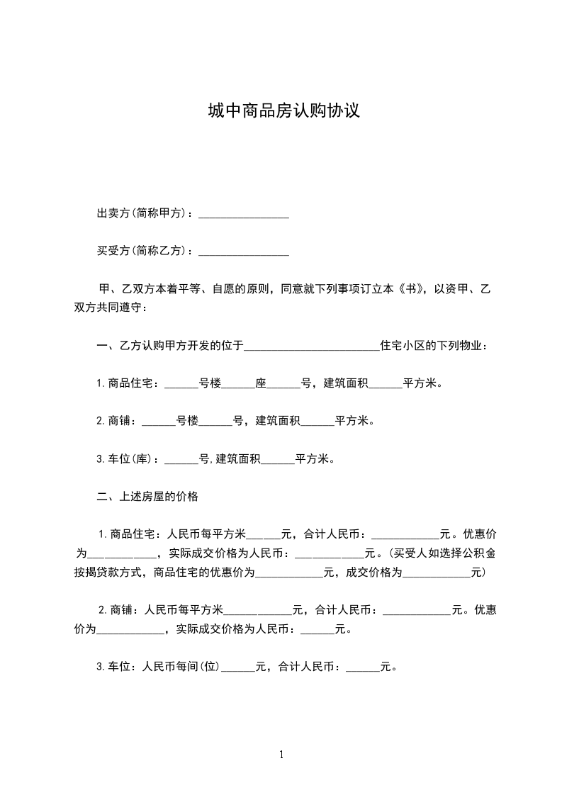 一、乙方认购甲方开发的位于________________________住宅小区的下列物业: