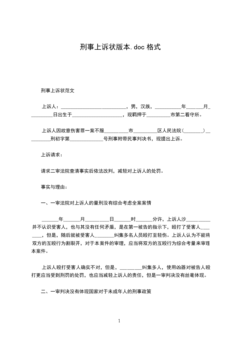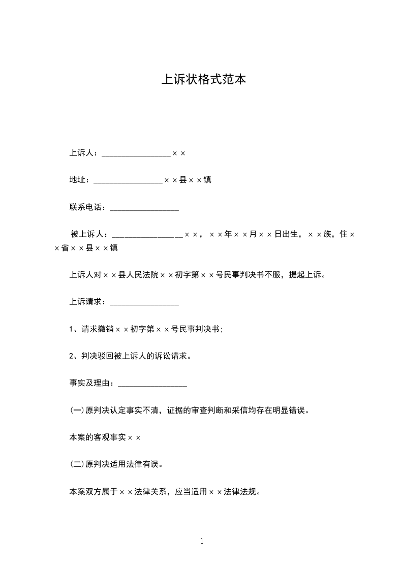 上诉状范文