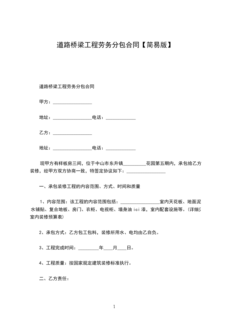 道路桥梁工程劳务分包合同