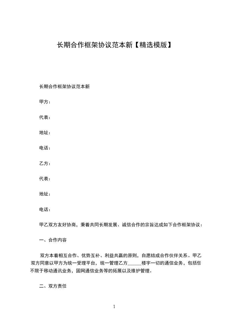 长期合作框架协议范本新