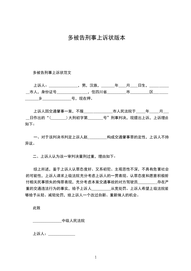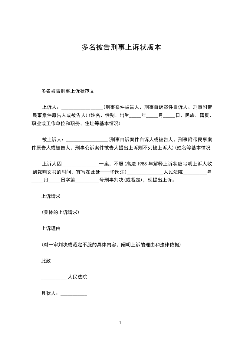 在文书上部正中写明“刑事上诉状”,比正文字体大一号。