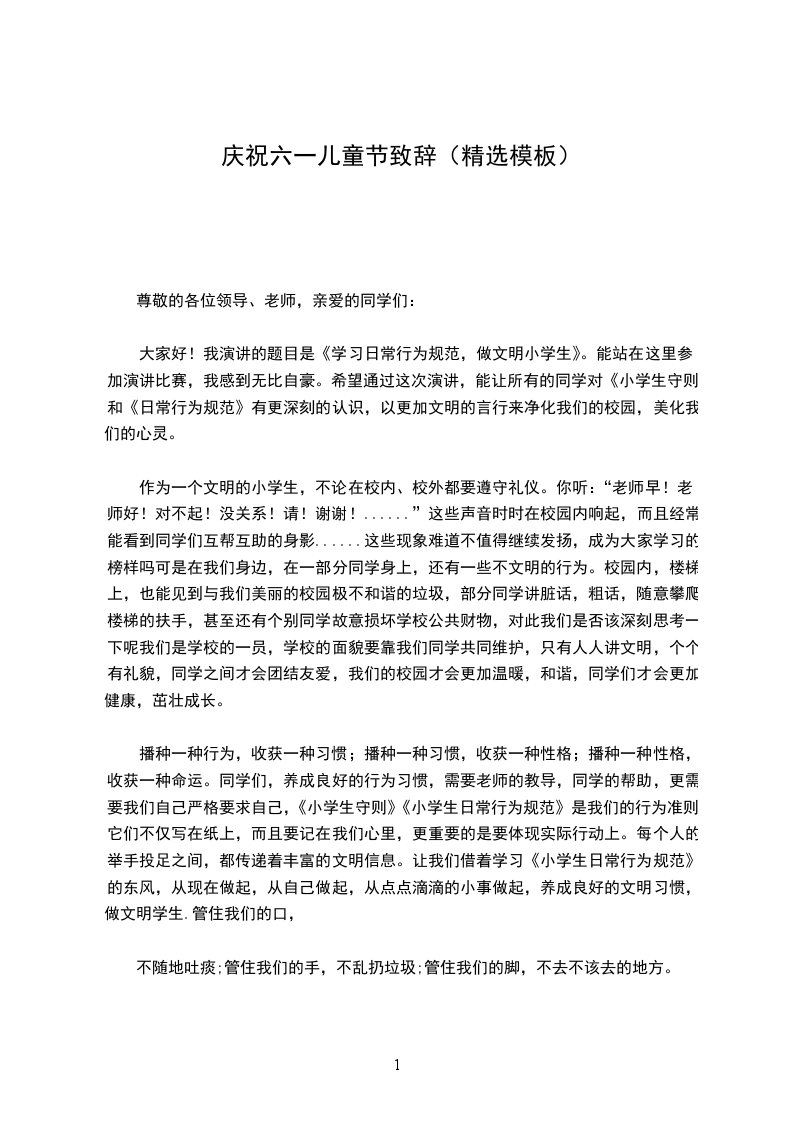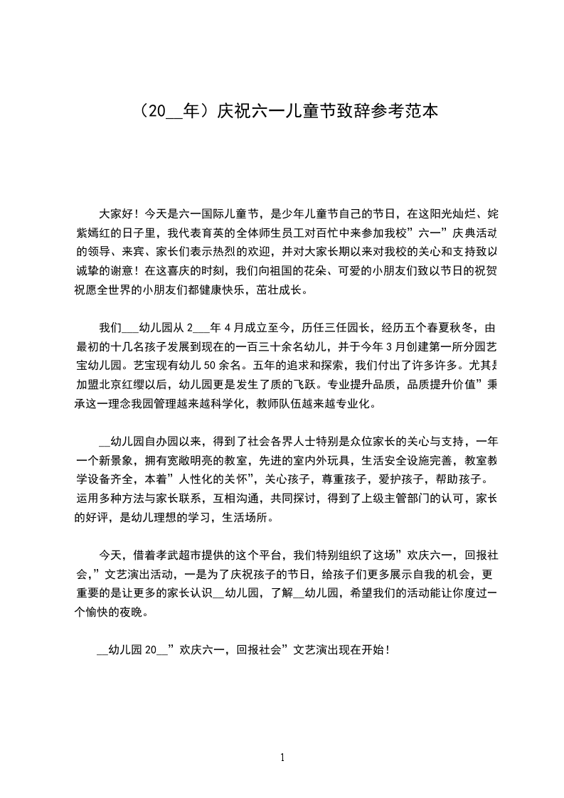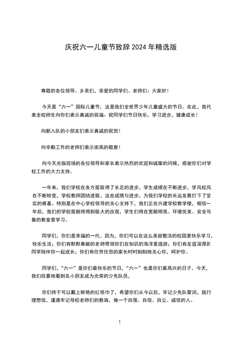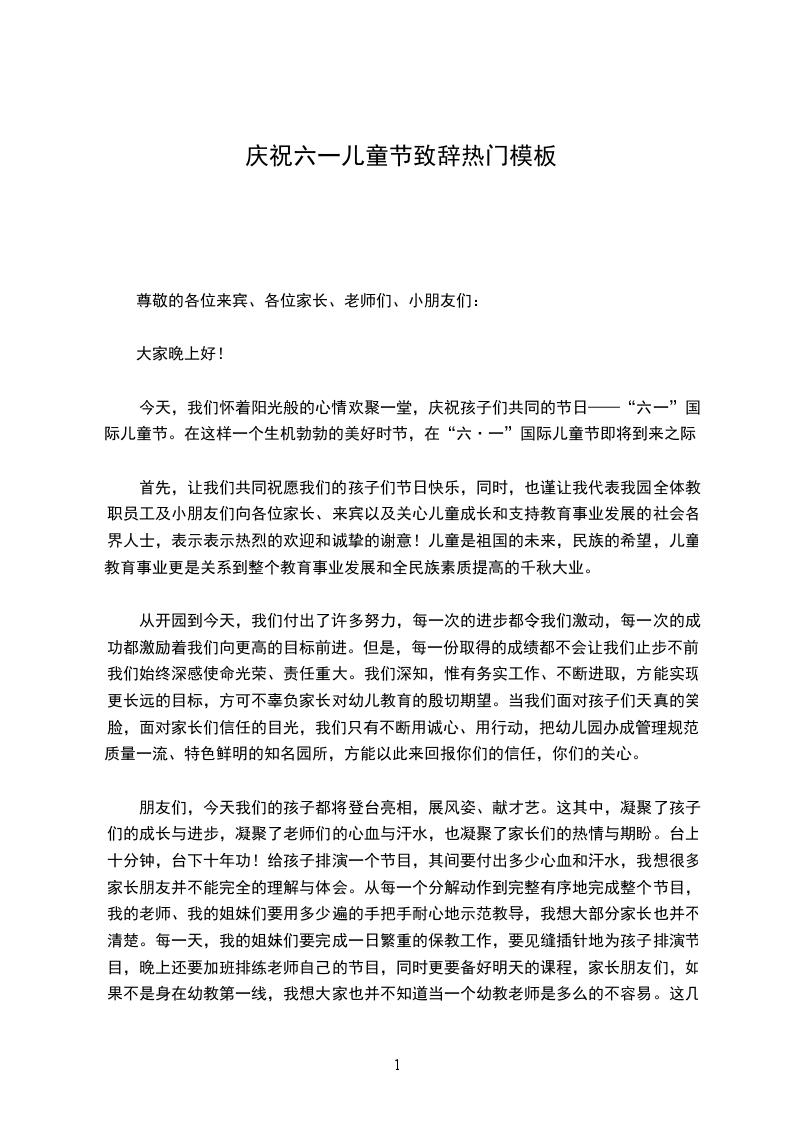大家好!今天是六一国际儿童节,是少年儿童节自己的节日,在这阳光灿烂、姹紫嫣红的日子里,我代表育英的全体师生员工对百忙中来参加我校”六一”庆典活动的领导、来宾、家长们表示热烈的欢迎,并对大家长期以来对我校的关心和支持致以诚挚的谢意!在这喜庆的时刻,我们向祖国的花朵、可爱的小朋友们致以节日的祝贺,祝愿全世界的小朋友们都健康快乐,茁壮成长。