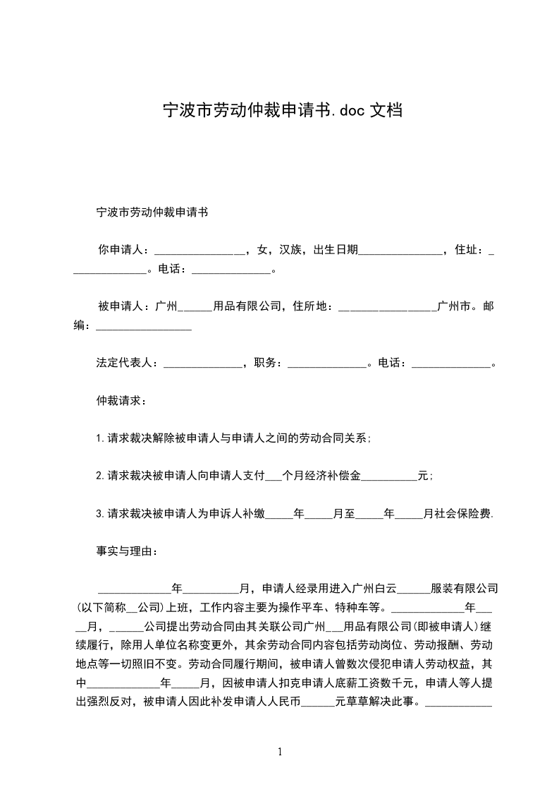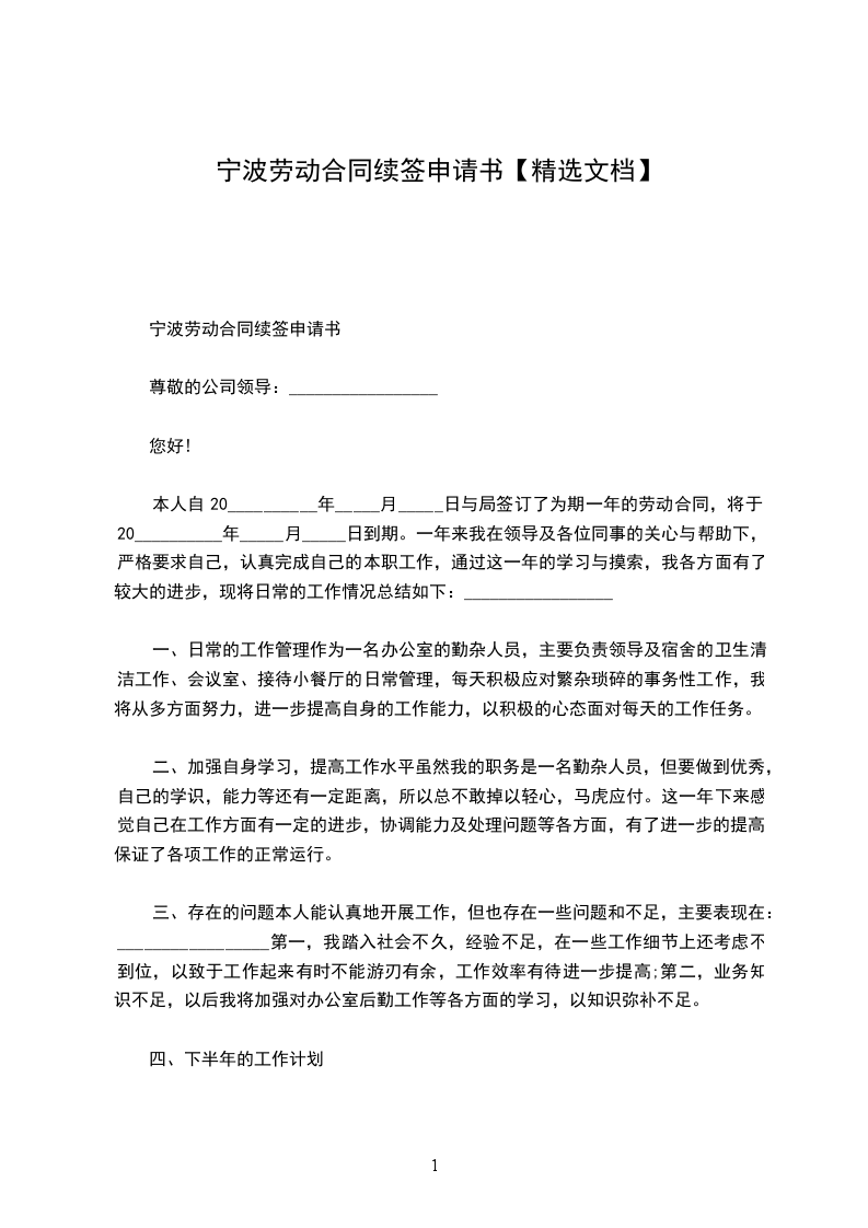 宁波劳动合同续签申请书范文