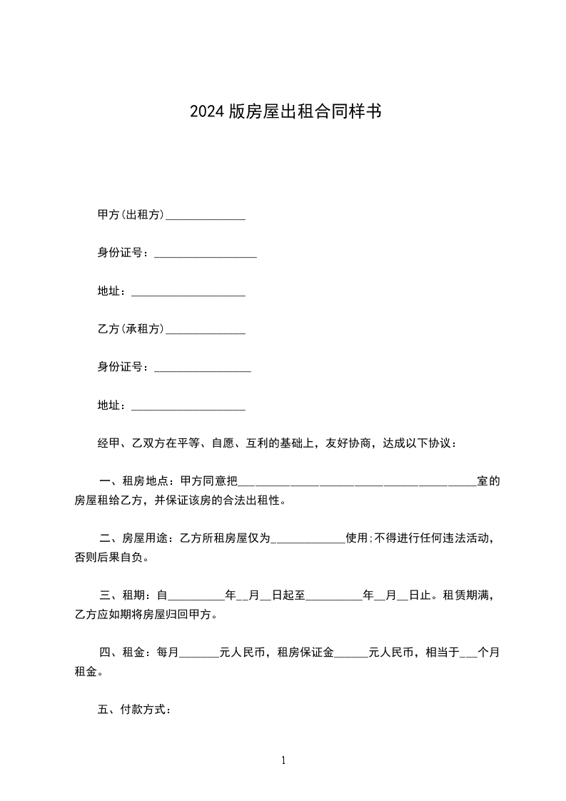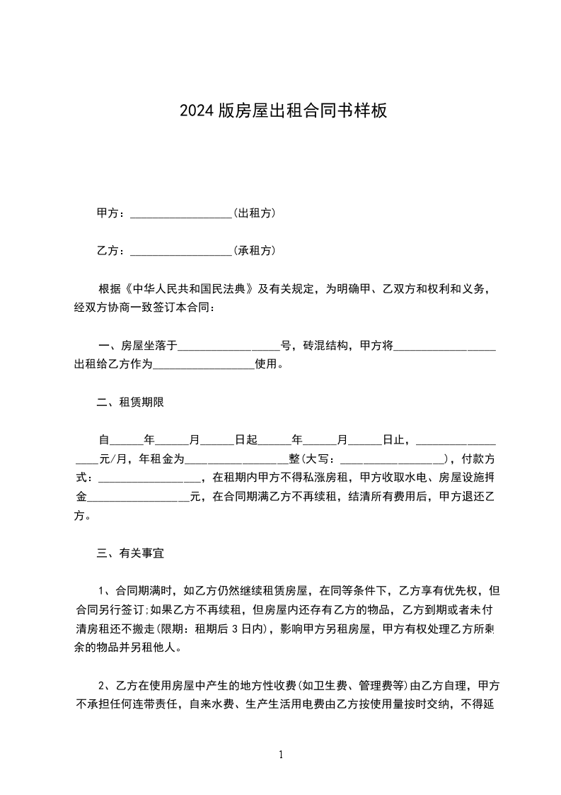 租赁期限自_________年_________月_________日起至_________年_________月_________日止,为期_________年,甲方应于_________年_________月_________日将房屋腾空并交付乙方使用。