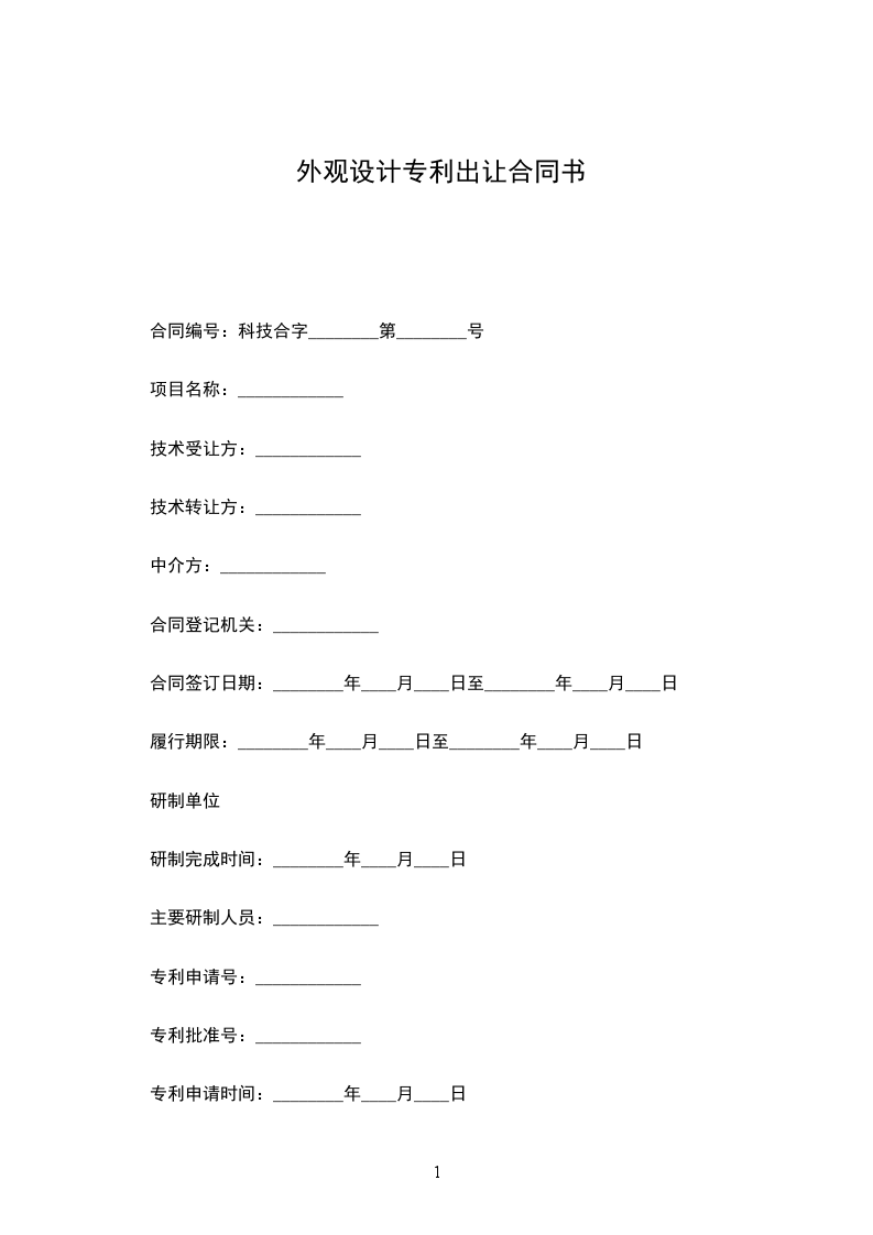 产品外观专利转让合同范文