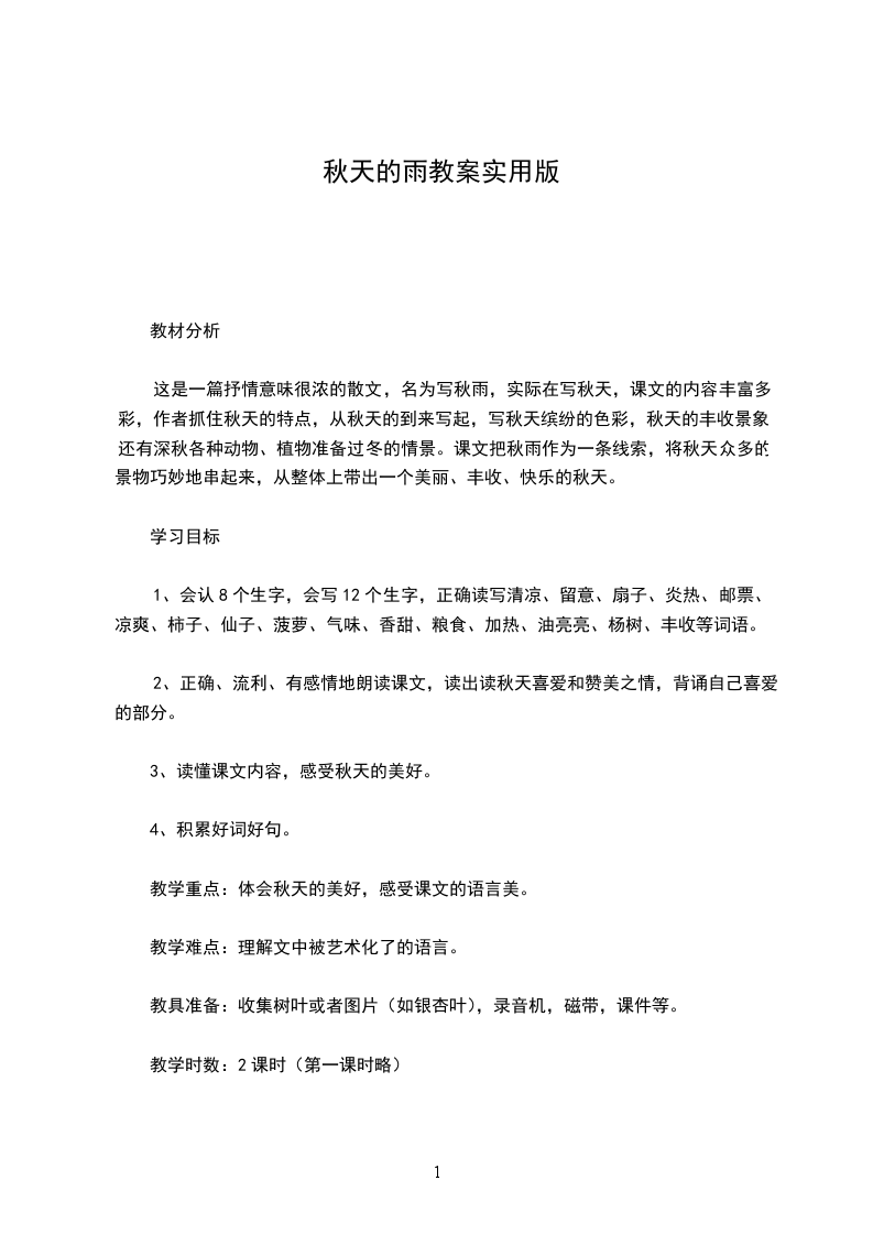 这是一篇抒情意味很浓的散文,名为写秋雨,实际在写秋天,课文的内容丰富多彩,作者抓住秋天的特点,从秋天的到来写起,写秋天缤纷的色彩,秋天的丰收景象,还有深秋各种动物、植物准备过冬的情景。课文把秋雨作为一条线索,将秋天众多的景物巧妙地串起来,从整体上带出一个美丽、丰收、快乐的秋天。