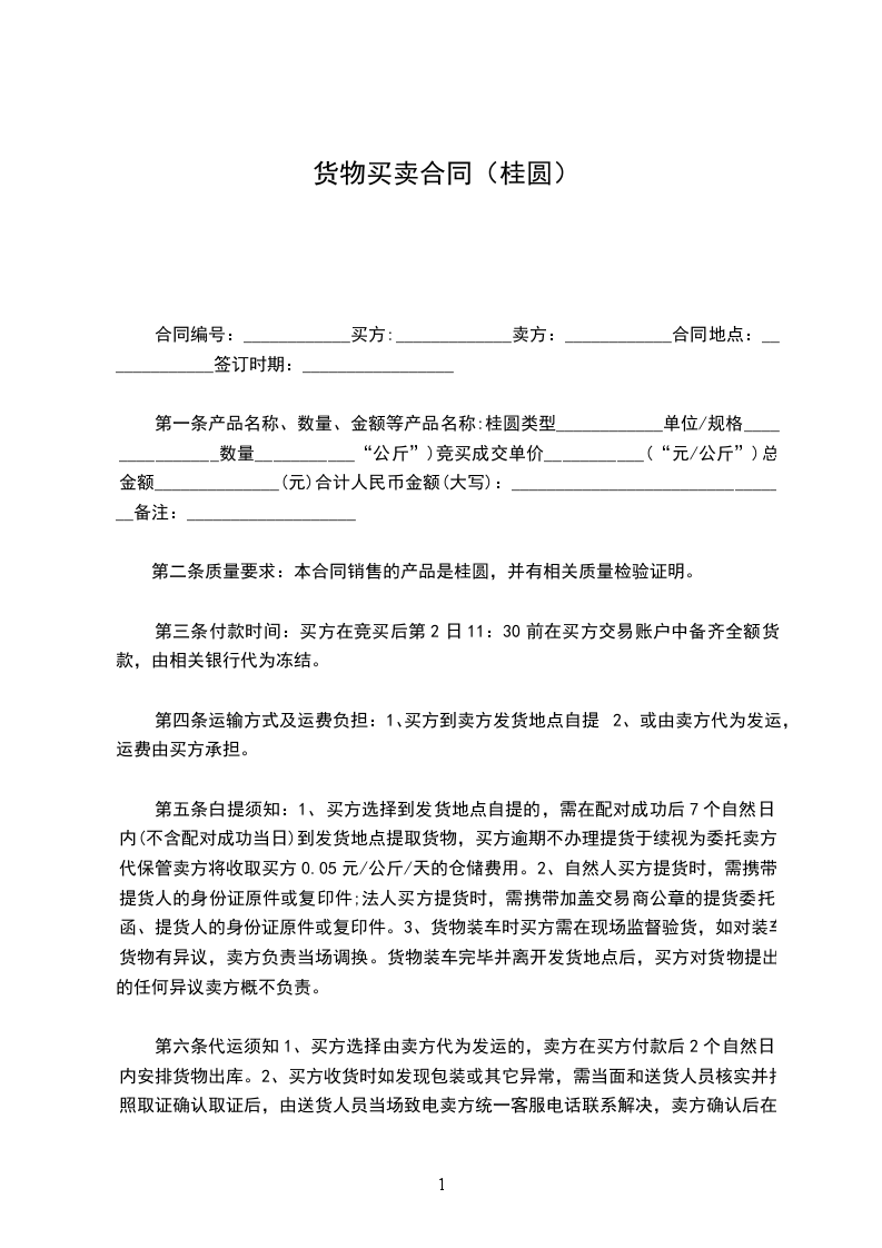 第一条产品名称、数量、金额等产品名称:桂圆类型____________单位/规格_______________数量___________“公斤”)竞买成交单价___________(“元/公斤”)总金额______________(元)合计人民币金额(大写):________________________________备注:___________________