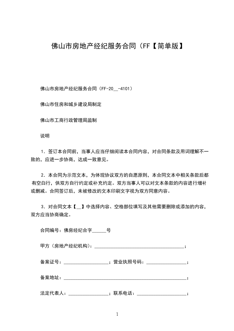 佛山市房地产经纪服务合同(FF-20__-4101)