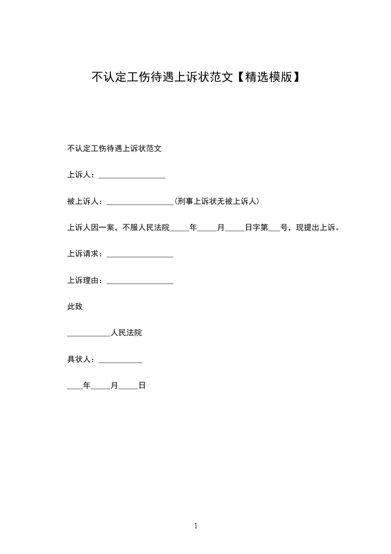不认定工伤待遇上诉状范文