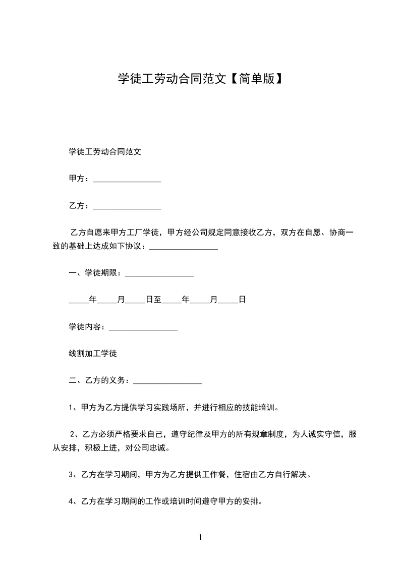 乙方自愿来甲方工厂学徒,甲方经公司规定同意接收乙方,双方在自愿、协商一致的基础上达成如下协议:_________________