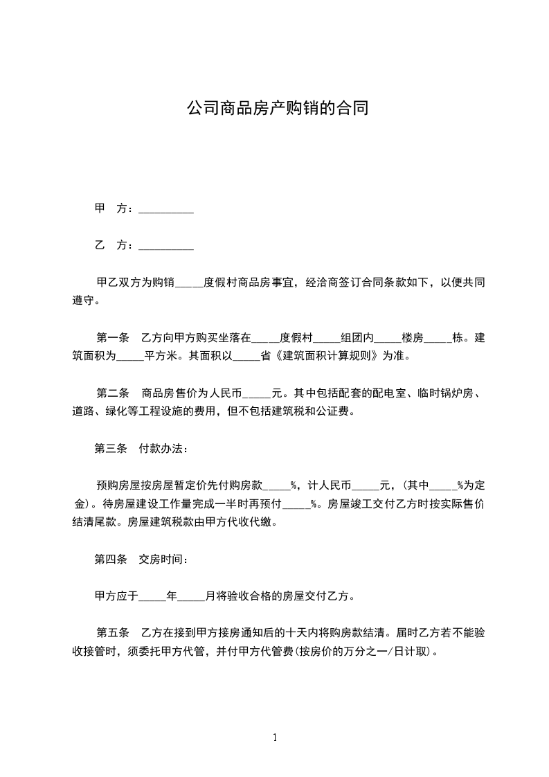 甲乙双方为购销_____度假村商品房事宜,经洽商签订合同条款如下,以便共同遵守。
