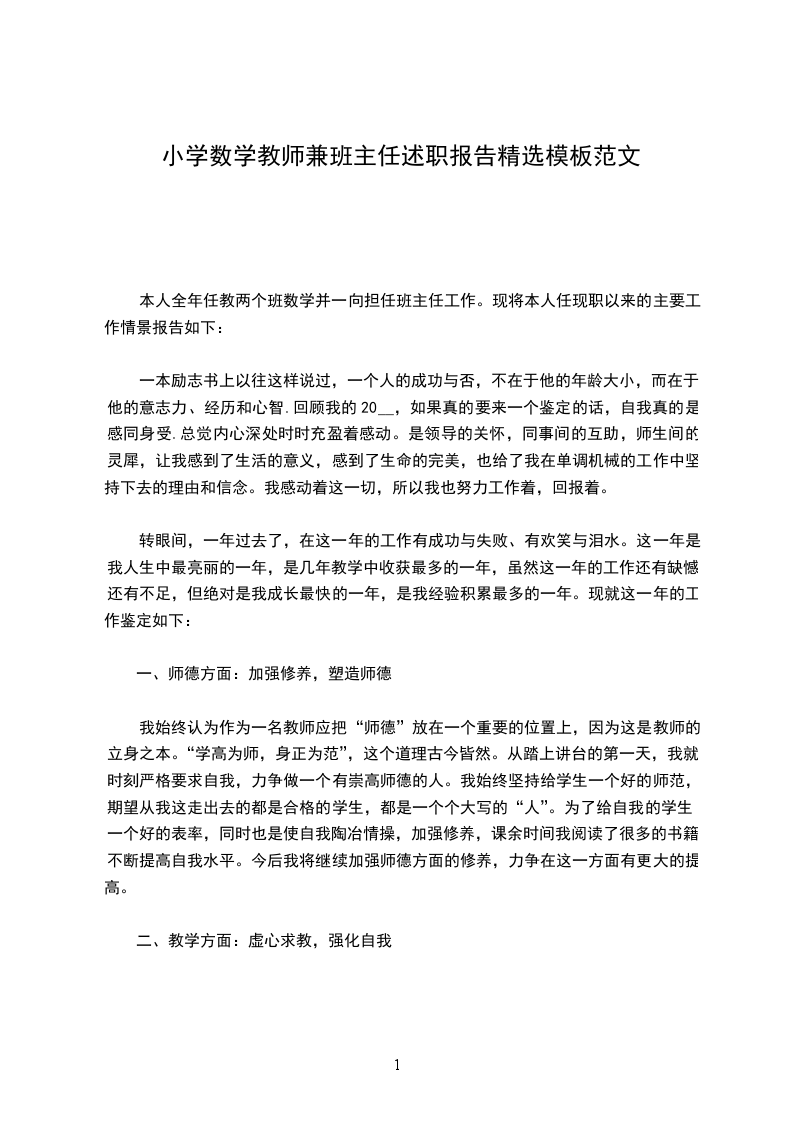 本人全年任教两个班数学并一向担任班主任工作。现将本人任现职以来的主要工作情景报告如下: