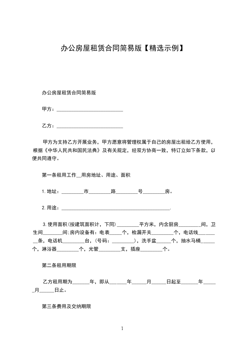 办公房屋租赁合同简易版