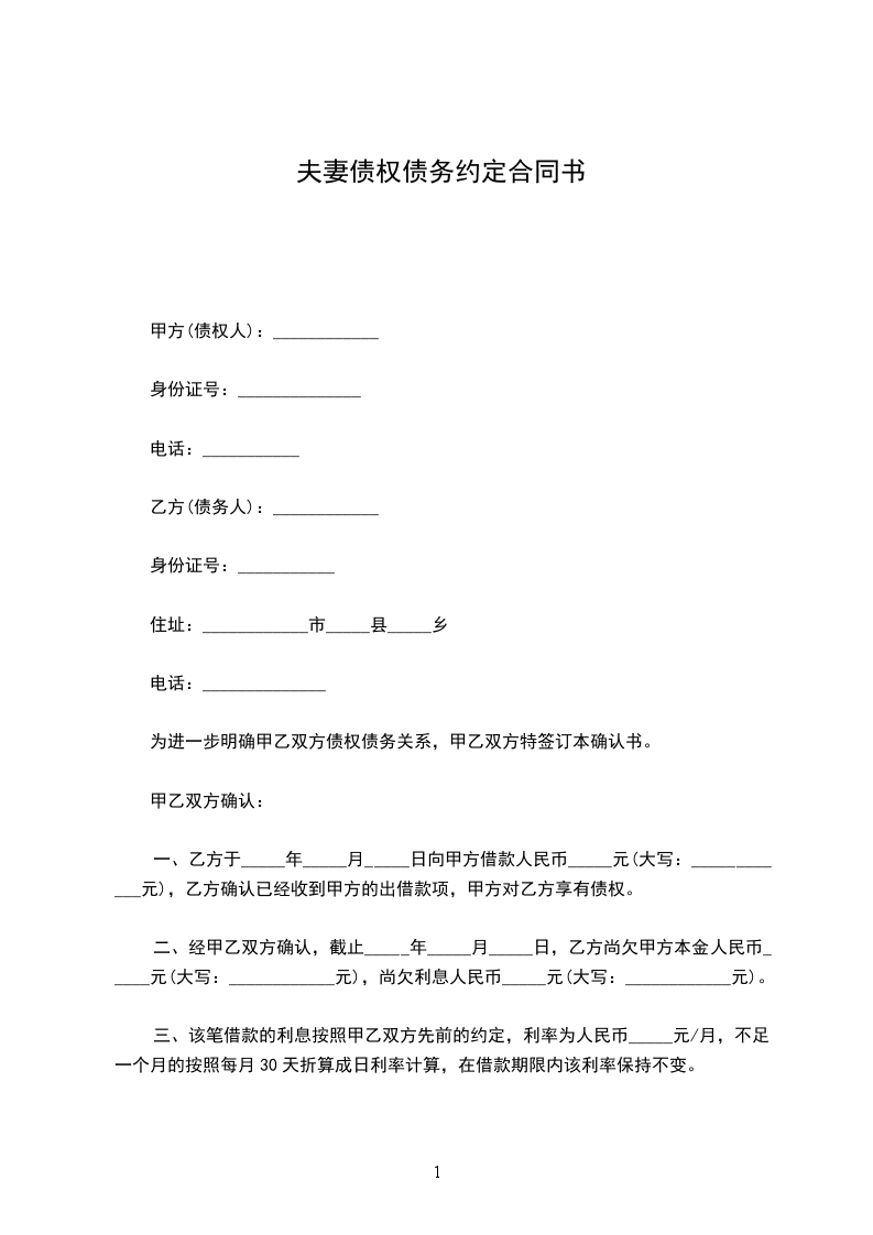 一、乙方于_____年_____月_____日向甲方借款人民币_____元(大写:____________元),乙方确认已经收到甲方的出借款项,甲方对乙方享有债权。