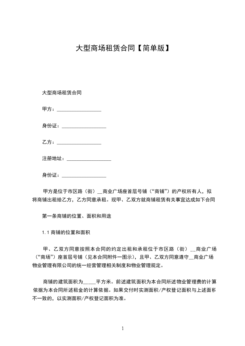大型商场租赁合同