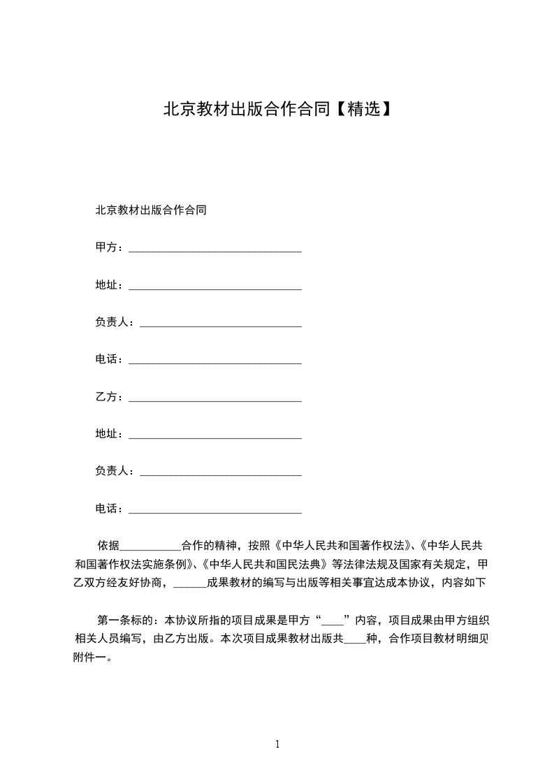 北京教材出版合作合同