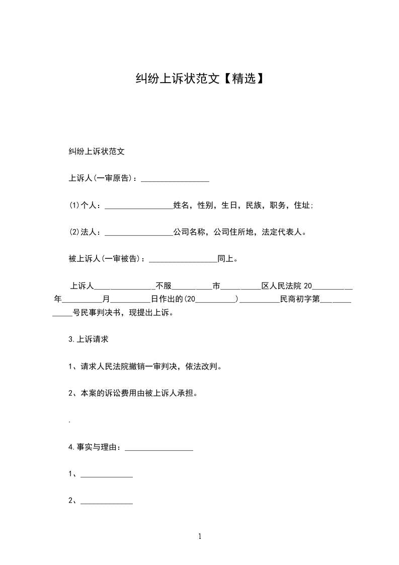 纠纷上诉状范文