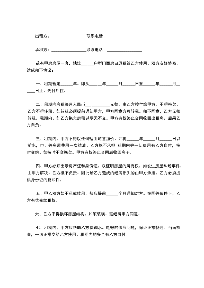 甲、乙双方就房屋租赁事宜,达成如下协议:_________________