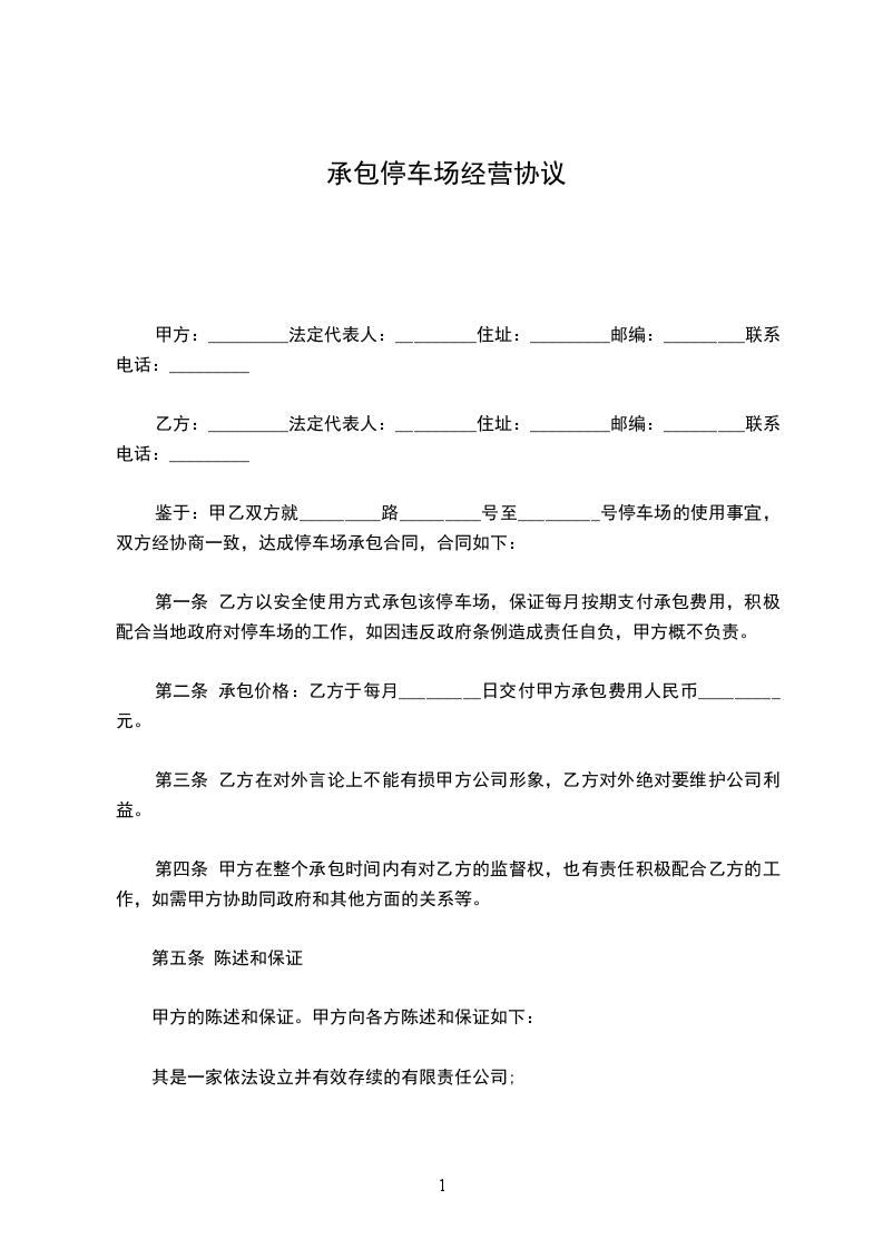 停车场工程承包协议书