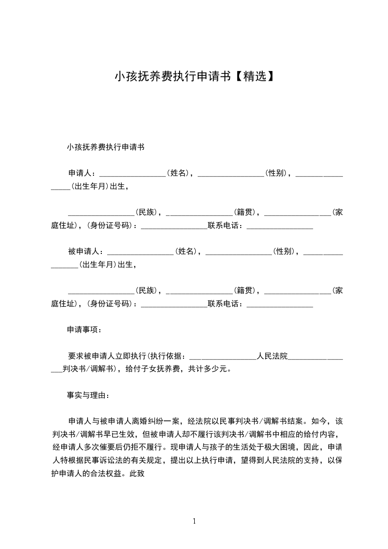 要求被申请人立即执行(执行依据:_________________人民法院_________________判决书/调解书),给付子女抚养费,共计多少元。