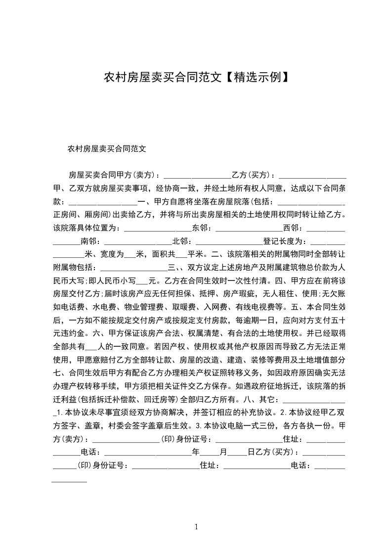 出售人与购买人就位于农村的房屋买卖事项,经充分、平等协商一致,自愿达成本合同。
