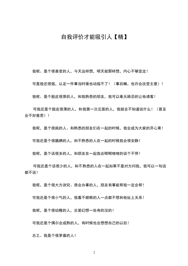 我呢、是个很善变的人,今天这样想,明天就那样想,内心不够坚定!