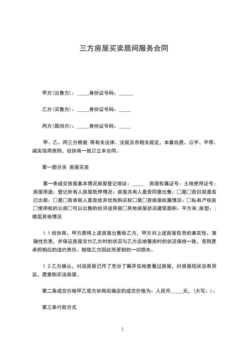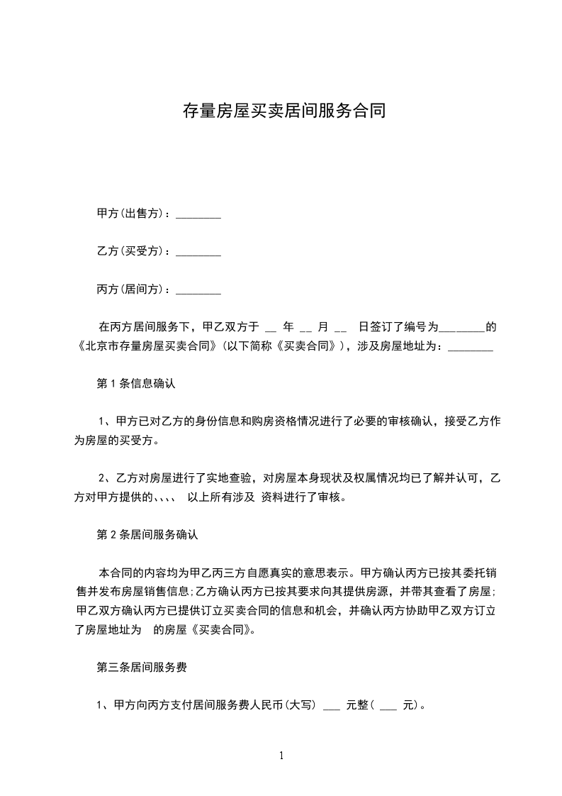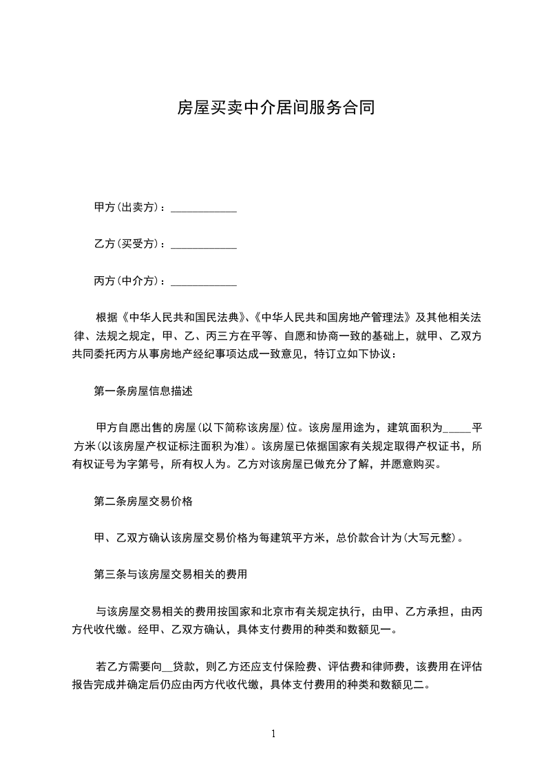 ________________元)的居间服务报酬。该报酬于甲方与乙方提供的买房人签订《房地产买卖合同》之日支付。