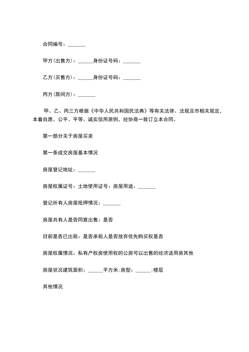 第一条:出售房屋的基本情况