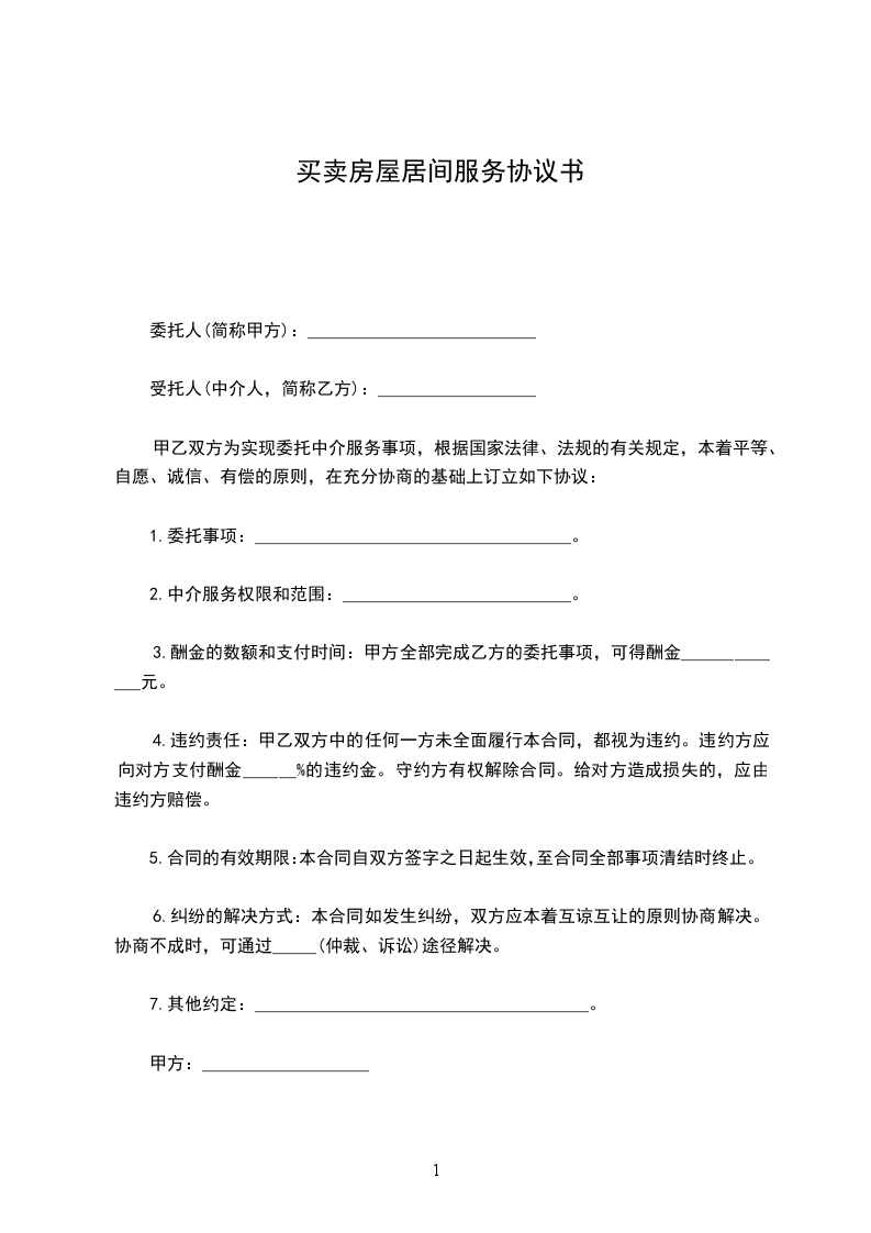 乙方完成居间事项,即甲方与乙方提供的买房人签订《房地产买卖合同》,甲方向乙方支付人民币¥____________元(大写: