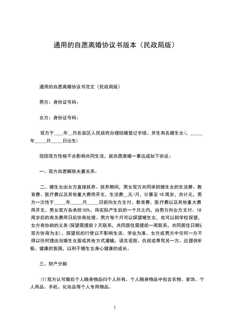 现因双方性格不合影响共同生活,就自愿离婚一事达成如下协议: