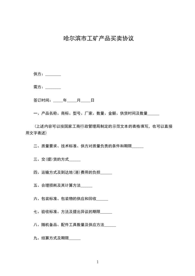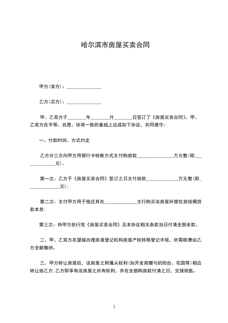 哈尔滨市房屋买卖合同