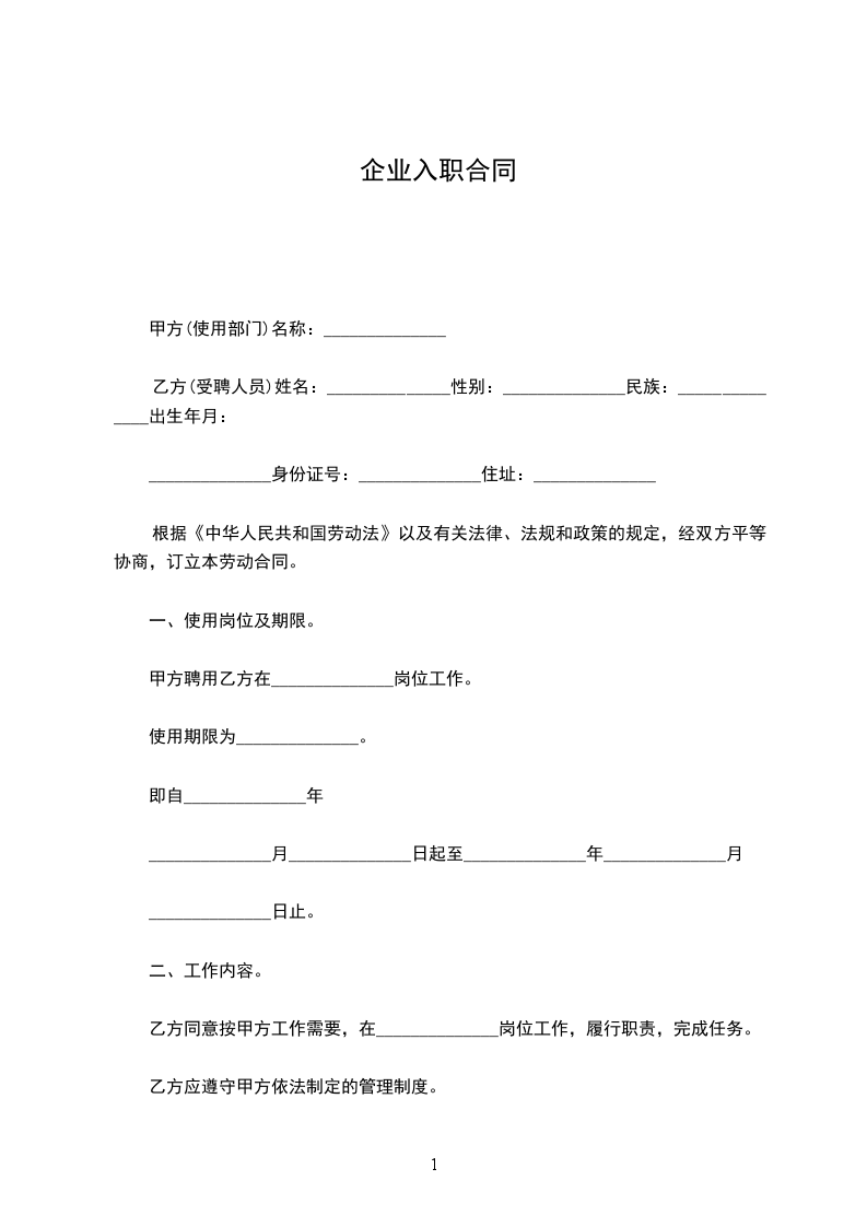 甲方聘用乙方在岗位工作。使用期限为。即自________年____月____日至________年____月____日止。