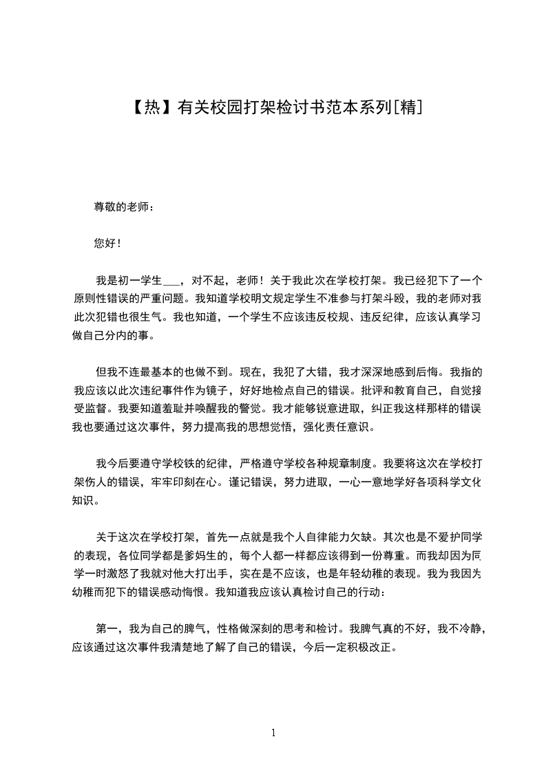 我是初一学生___,对不起,老师!关于我此次在学校打架。我已经犯下了一个原则性错误的严重问题。我知道学校明文规定学生不准参与打架斗殴,我的老师对我此次犯错也很生气。我也知道,一个学生不应该违反校规、违反纪律,应该认真学习,做自己分内的事。
