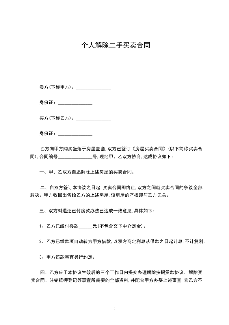 一、甲、乙双方自愿解除上述《二手房买卖合同》;