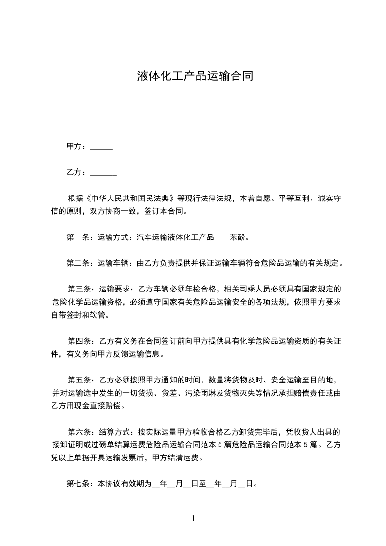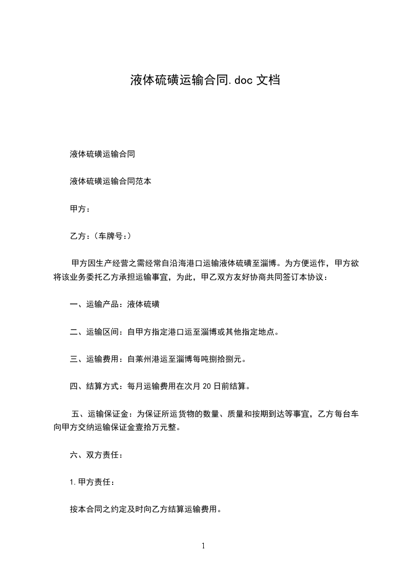 液体硫磺运输合同范本