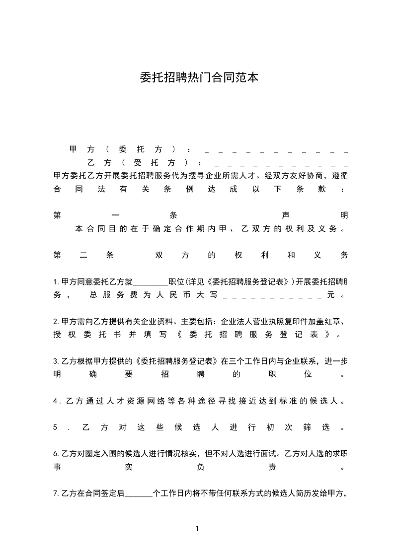六、受托人向委托人承诺,按照本合同的约定,承担本合同专用条款中约定范围内的代理业务。