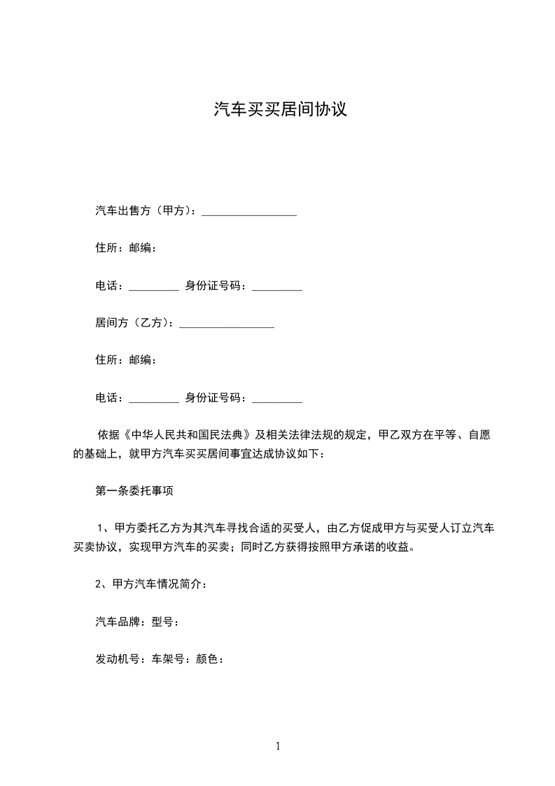 汽车居间服务协议