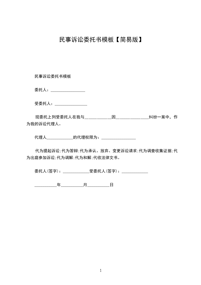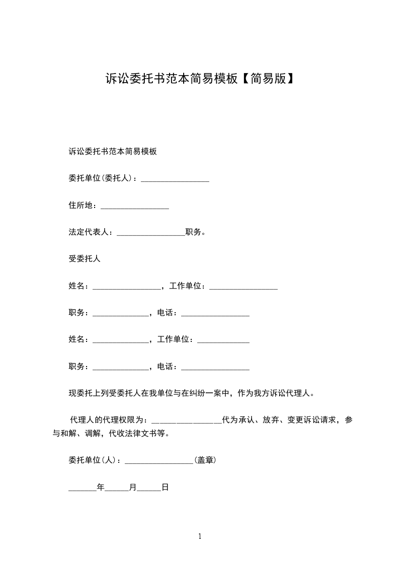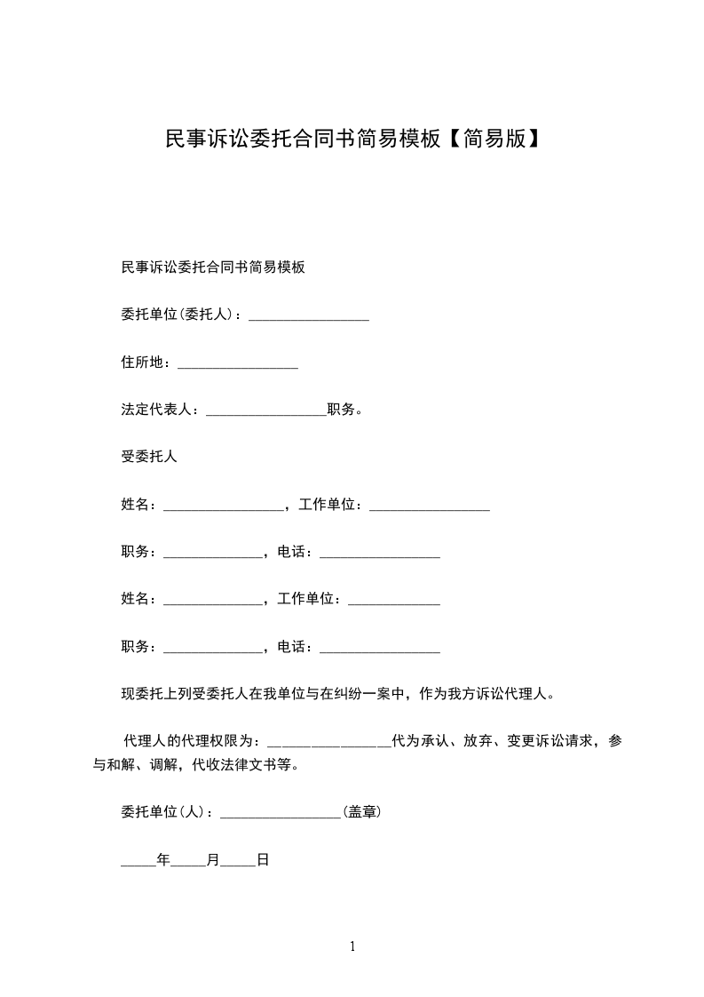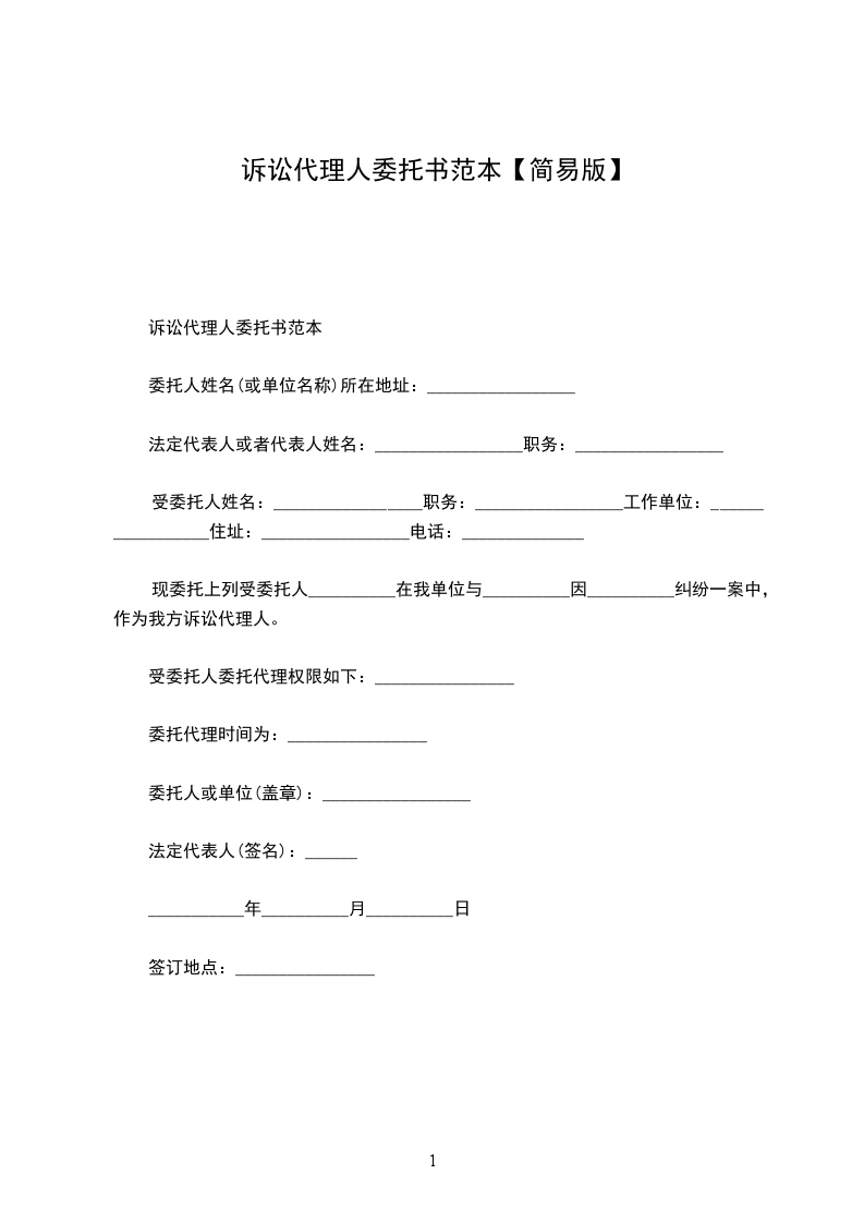 诉讼代理委托合同经典版范文