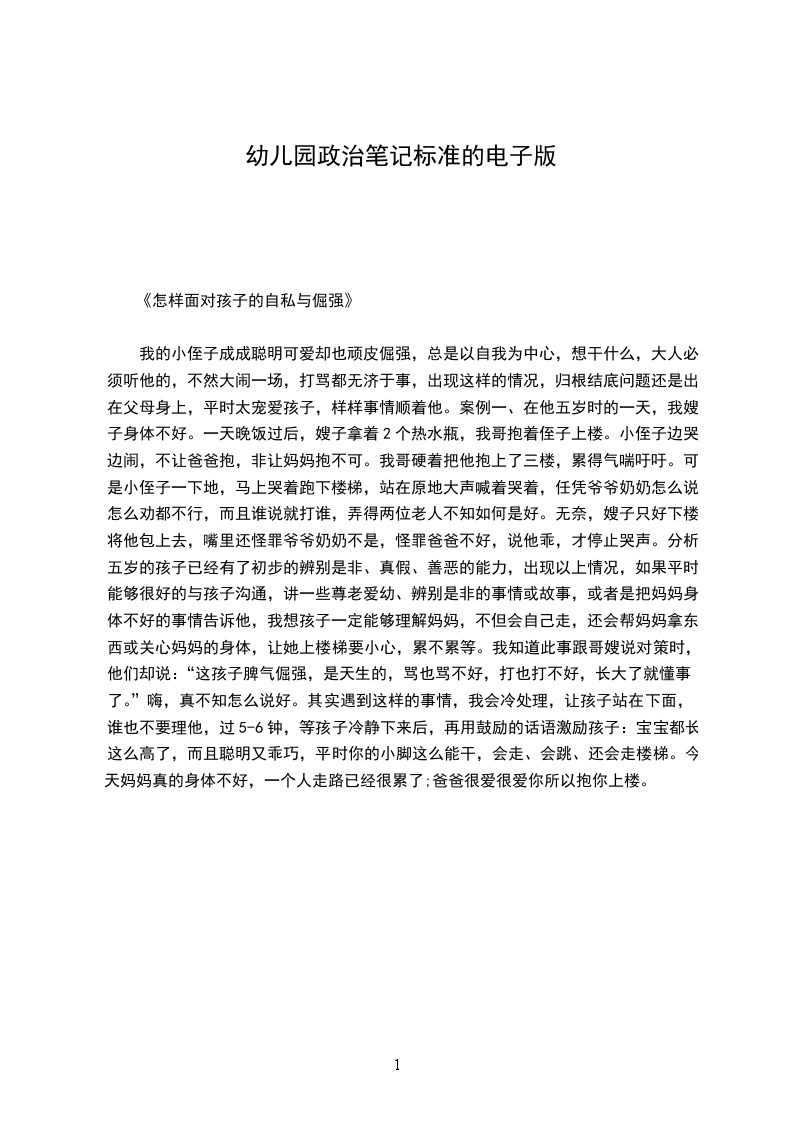 我的小侄子成成聪明可爱却也顽皮倔强,总是以自我为中心,想干什么,大人必须听他的,不然大闹一场,打骂都无济于事,出现这样的情况,归根结底问题还是出在父母身上,平时太宠爱孩子,样样事情顺着他。案例一、在他五岁时的一天,我嫂子身体不好。一天晚饭过后,嫂子拿着2个热水瓶,我哥抱着侄子上楼。小侄子边哭边闹,不让爸爸抱,非让妈妈抱不可。我哥硬着把他抱上了三楼,累得气喘吁吁。可是小侄子一下地,马上哭着跑下楼梯,站在原地大声喊着哭着,任凭爷爷奶奶怎么说怎么劝都不行,而且谁说就打谁,弄得两位老人不知如何是好。无奈,嫂子只好下楼将他包上去,嘴里还怪罪爷爷奶奶不是,怪罪爸爸不好,说他乖,才停止哭声。分析:五岁的孩子已经有了初步的辨别是非、真假、善恶的能力,出现以上情况,如果平时能够很好的与孩子沟通,讲一些尊老爱幼、辨别是非的事情或故事,或者是把妈妈身体不好的事情告诉他,我想孩子一定能够理解妈妈,不但会自己走,还会帮妈妈拿东西或关心妈妈的身体,让她上楼梯要小心,累不累等。我知道此事跟哥嫂说对策时,他们却说:“这孩子脾气倔强,是天生的,骂也骂不好,打也打不好,长大了就懂事了。”嗨,真不知怎么说好。其实遇到这样的事情,我会冷处理,让孩子站在下面,谁也不要理他,过5-6钟,等孩子冷静下来后,再用鼓励的话语激励孩子:宝宝都长这么高了,而且聪明又乖巧,平时你的小脚这么能干,会走、会跳、还会走楼梯。今天妈妈真的身体不好,一个人走路已经很累了;爸爸很爱很爱你所以抱你上楼。