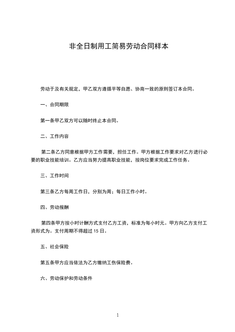 第四条 甲方按小时计酬方式支付乙方工资,标准为每小时______元。