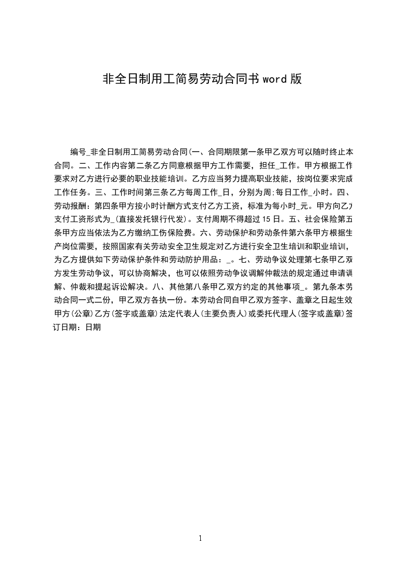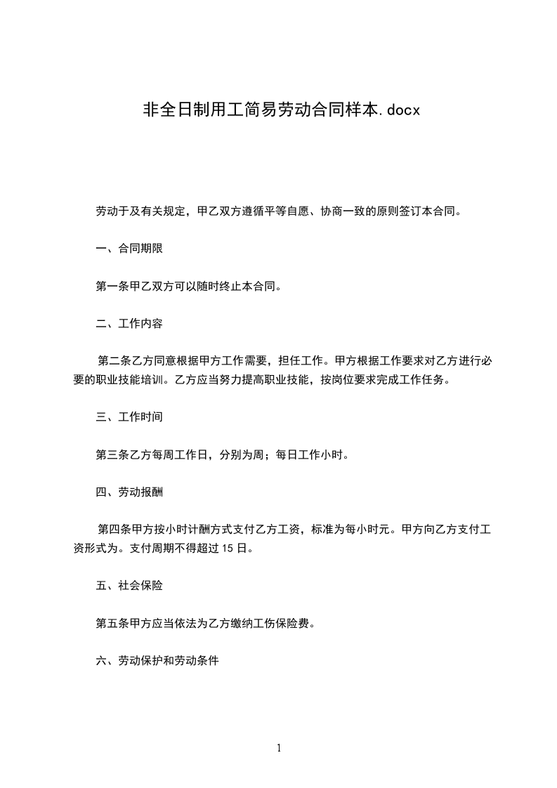 第三条 乙方每周工作______日,分别为周______;每日工作______小时。