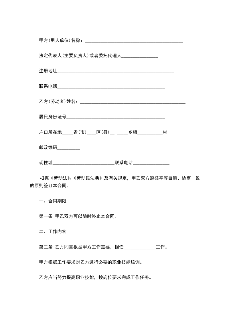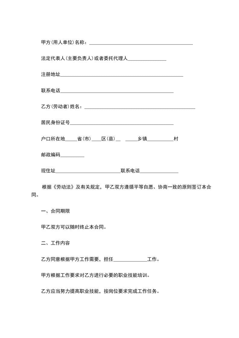 第二条 乙方同意根据甲方工作需要,担任______________工作。