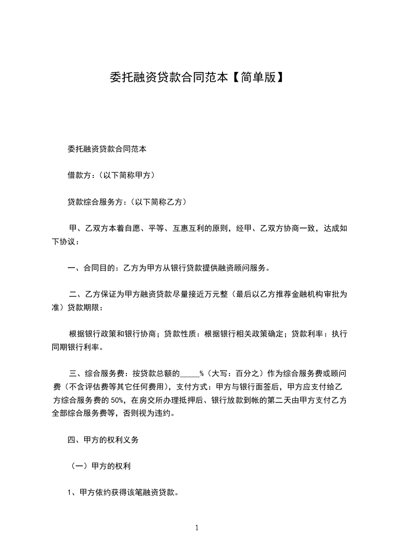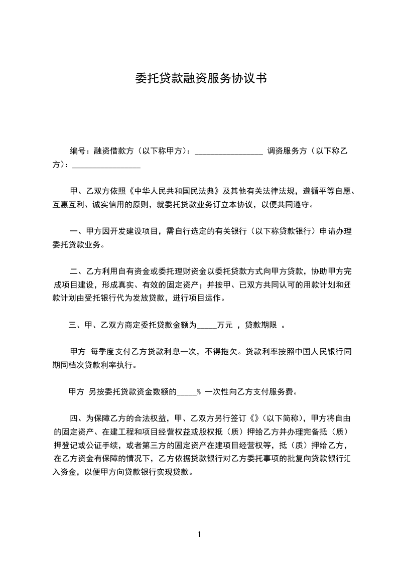 委托融资贷款合同范本