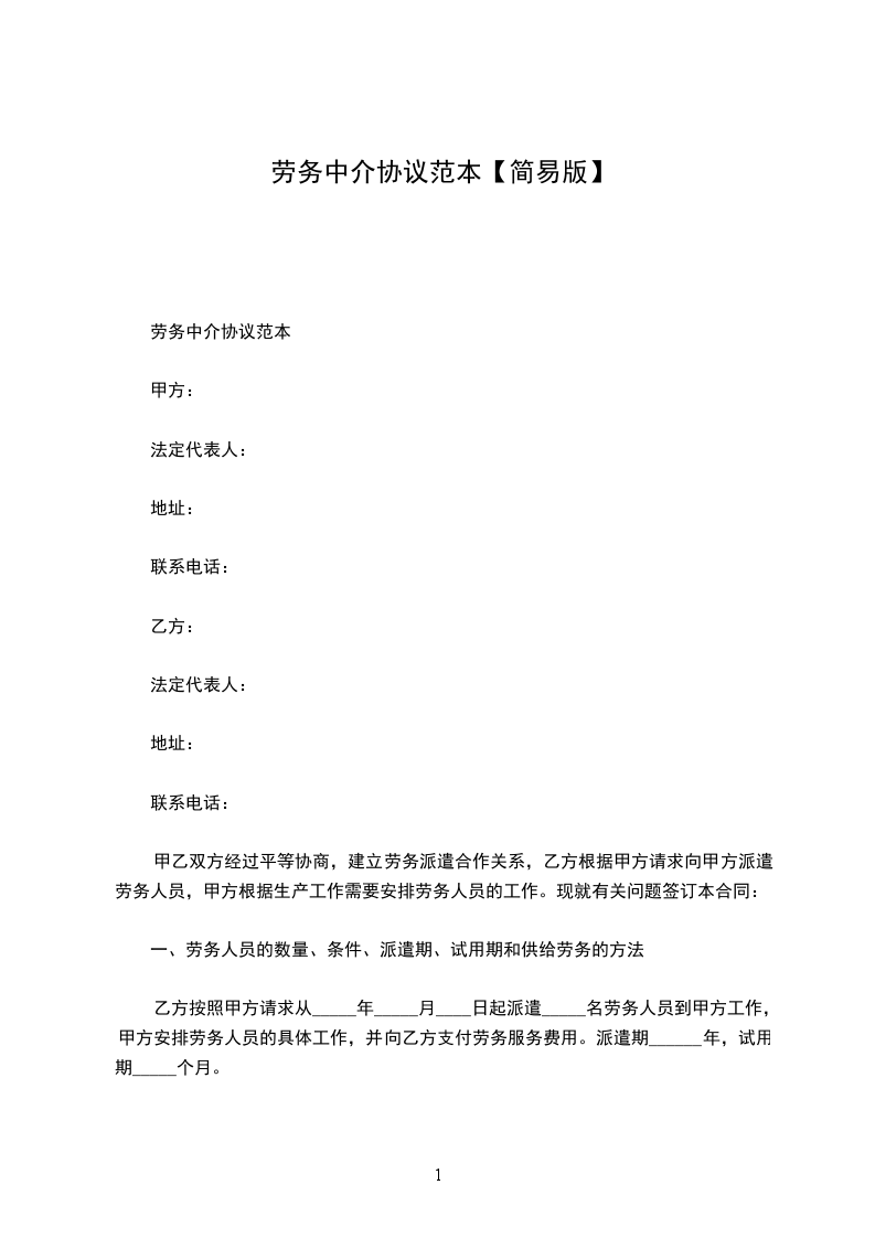 劳务中介协议范本