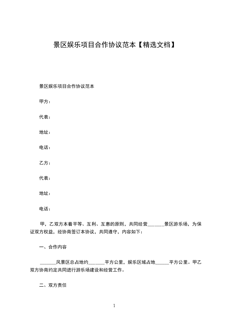 甲,乙双方本着平等、互利、互惠的原则,共同经营_______景区游乐场,为保证双方权益,经协商签订本协议,共同遵守,内容如下:
