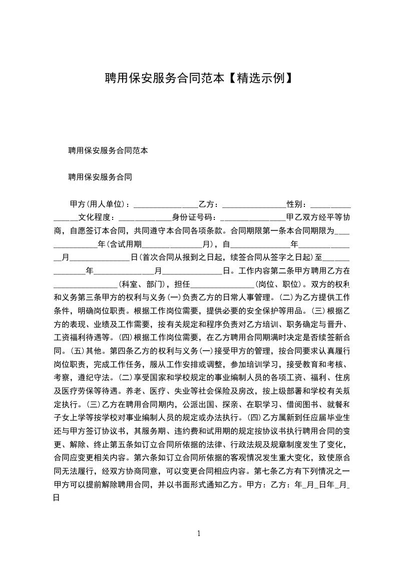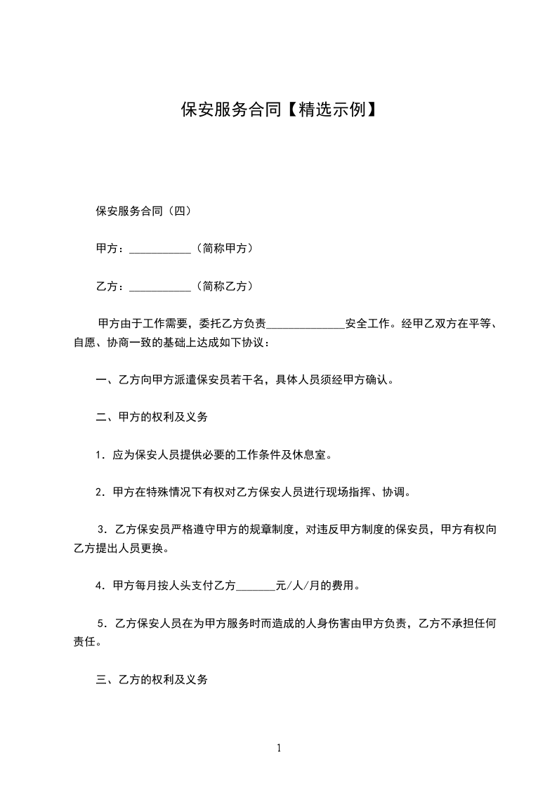 一、乙方向甲方派遣保安员若干名,具体人员须经甲方确认。