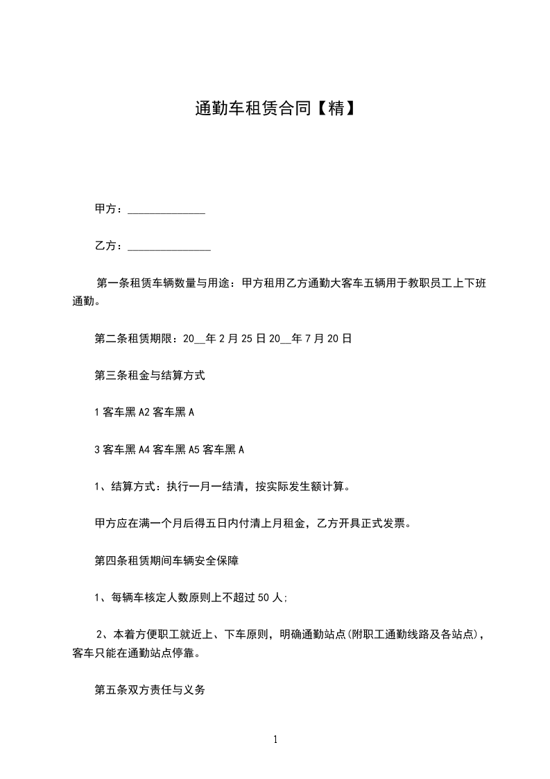 经甲乙双方平等协商,就租车事宜达成如下通勤车租赁合同